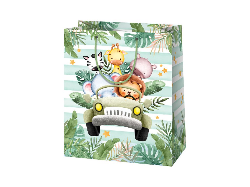 Darčeková taška A5 kreslené zvieratká zelené pozadie
