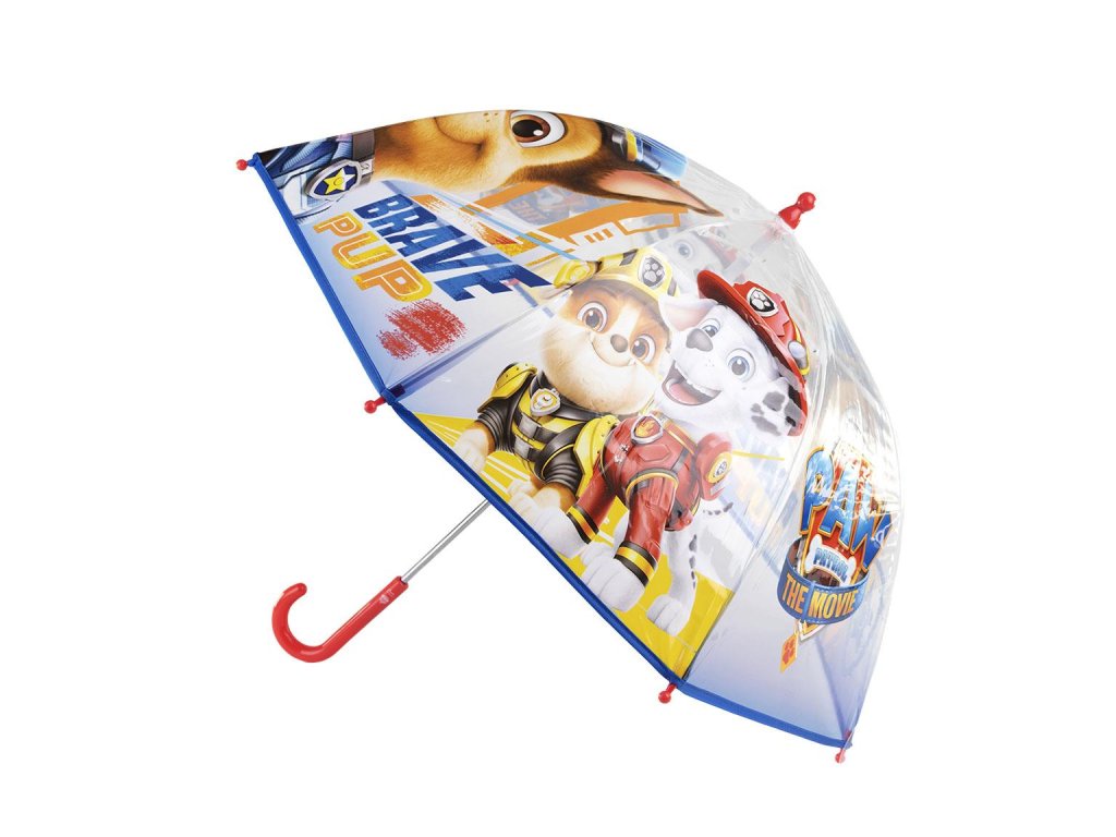 Priehľadný materiál so vzorom Labkovej patroly dodáva tomuto dáždniku jedinečný vzhľad a umožňuje deťom vidieť na cestu pred seba.