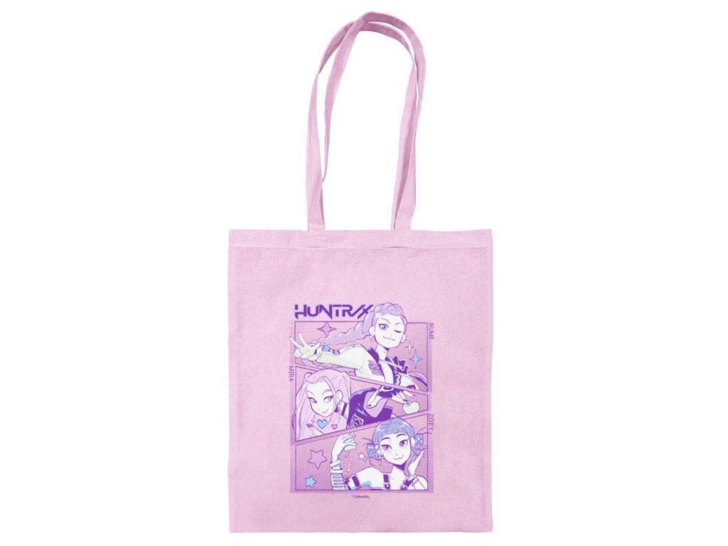 Kľúčový umelecký dizajn na čiernej plátenej taške. Udržateľná a opakovane použiteľná taška s motímom Demon Hunter je štýlovým a užitočným doplnkom pre každý deň.