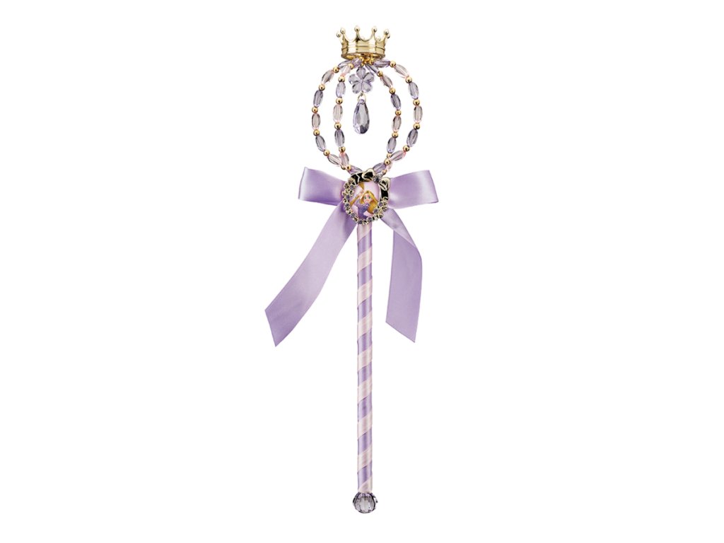 Detský set Rapunzel pre malé princezné obsahuje: Trblietavá korunka zdobená fialovými kamienkami a čarovná palička so stuhou...