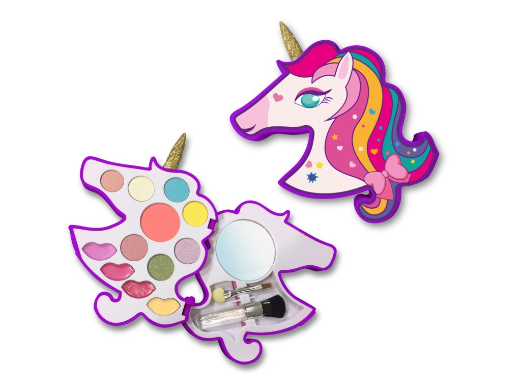 Make-up paletku s dizajnom milého Unicorna očarí svojim unikátnym dizajnom v tvare Unicorna. Obsahuje 7 očných tieňov, 1 lícenku, 4 lesky na pery, 2 štetce a zrkadlo. Make-up paletka je ideálnym darčekom pre malé parádnice.